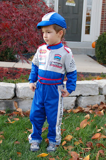 How sweet is that little car driver! The hat made it all the way through trick or treat! The little man made it almost through the neighborhood before we had to take a detour home!