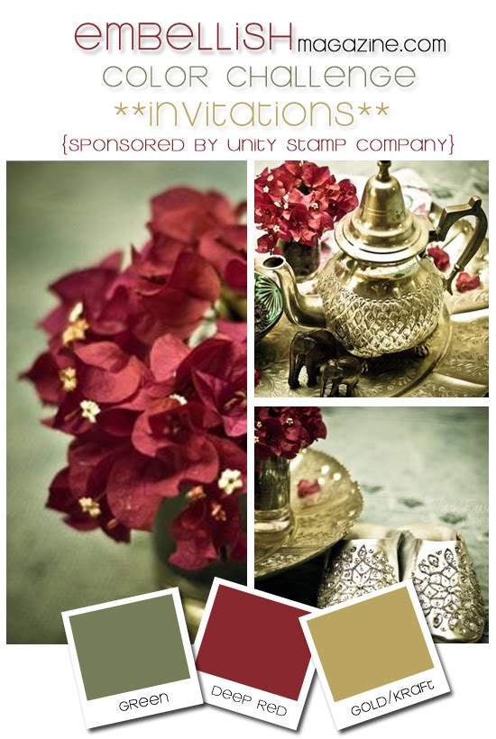 Happy Friday! Time to play along with the Embellish Invitation Color Challenge...I sat on my entry for this challenge for a few days before I created something. The gold had me a little stumped. I pulled out the green, red and white and then started stamping with my PTI Fancy Flourishes set. That set is very inky! I love it! I stamped in gold ink and then I clear embossed the sheets prior to punches out a whole punch of stars. The background layer behind the stars is gold...it looks like kraft, but I promise it's gold! I think used my PTI Fillable Frames and stamped on the You're Invited. I think this invitation would be fun for a Christmas or New Year's party! Hope you like it! Have a fabulous weekend!