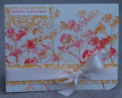 Good morning...it's a foggy, foggy start to our day here. Ryan's a little disappointed as his All Star Tournament was supposed to start today, but we've been postponed until Monday due to rain. Bit of a bummer, but also kind of nice to have no plans for the day (other than some work for me :(!)This is my first time playing along with this challenge. Thanks Julie for suggesting it to me! Hope you enjoy the cards...I made to similar cards with some fun Hero Arts stamps and Ranger Distress Inks. My inspiration was to pull out the various shades of yellow and a few of the reds/oranges.