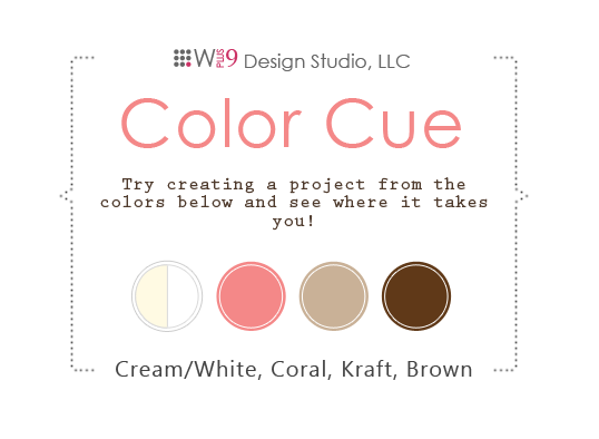 This month's Color Cue Challenge has gorgeous colors. I am in love with the coral color in the challenge! I had fun using by Funk Foliage stamps again to make this card...very simple, but fun and great for lots of occasions! Only downfall is that white craft ink seems to take forever to dry...anyone have a favorite brand of white craft ink they use?!! Ingredients: WPlus9 Funky Foliage Stamps; SU White Craft Ink; Bazzill Basics Coral Paper; SU Chocolate Chip Paper and Ink, PTI Twine, Butons and Kraft Paper