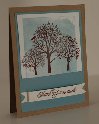 My card today is for two challenges: Card Creations Challenge: Thank You Cards and Jenny's Wee Memories Challenge. Jenny's challenge was to choose something that inspired you. I had two things that inspired me: Collin's sweet picture below and Jennifer McGuire. I loved the picture that Collin brought home and wanted to create a card similar to it. I thought of Jennifer's technique where you put distress ink on your craft pad and then spray it will Perfect Pearls. You then take a stamp block and rub it in the ink/pearls mixture. Once the block is covered you "stamp" the block on your cardstock. The blue background on this card has the pearlized ink on it. I think dried it a bit and stamped the tree images on it. I was pleased with how it turned out and made a few wintery thank you notes.