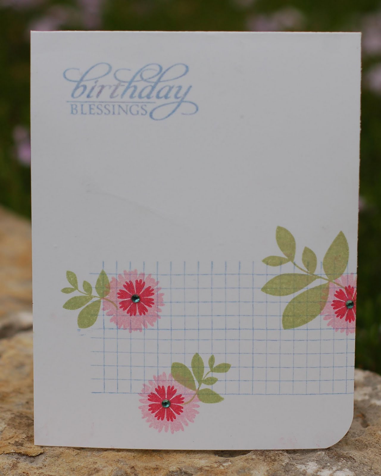 oh, I love the grid image with flowers...it really makes the card seem to have dimension! And, of course, I love that stamp!! I haven't used that one yet...hmmm....perfect size to go through the mail too! Thanks for inspiring!!