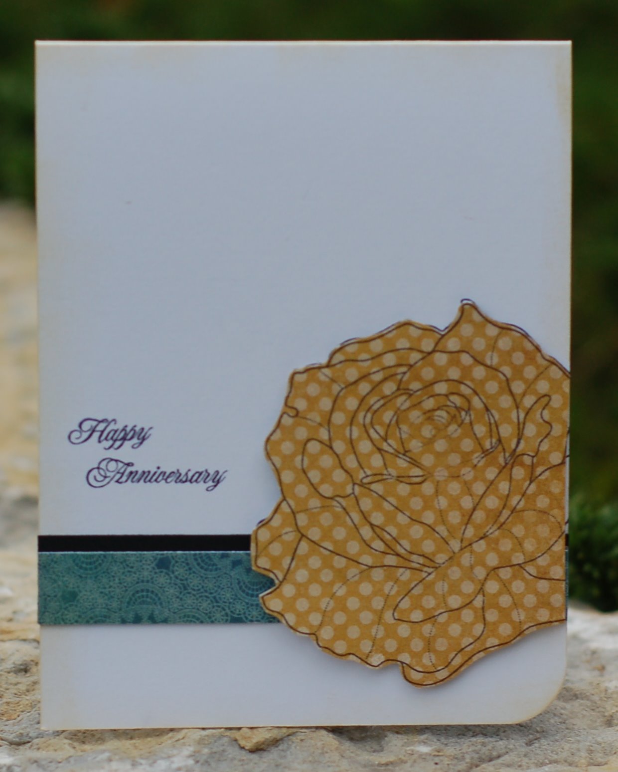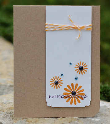 Now onto my cards...this morning I have two anniversary cards to share with you.  I needed five different anniversary cards for my co-workers.  I like to give my team anniversary cards for big anniversaries (5, 10, etc.) years and I actually have five for September...so I set to work this weekend making a variety of CAS cards.  These are both inspired by the colors at the Play Date Cafe.