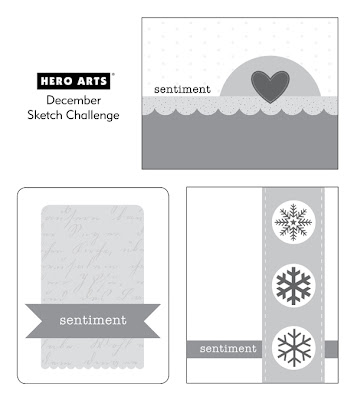 Hello there! Have you heard about Hero Arts Publications Incentive? It is AMAZING! When I emailed Hero Arts with recent publications that used their stamps, I received $150 worth of free Hero goodies...yes $150! So...ten new stamps sets arrived at my door! I've been getting very inky using my new Hero Arts stamps. This card features the Oxford Stamps and coordinating Basic Grey Oxford papers. I am entering this over at the Hero Arts Challenge using the sketch shown on the left below. I'm really enjoying trying to layer my stamps a bit! That's all for today...be on the look out for more Hero Arts cards :)