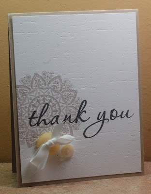 I love your use of the signature thin ribbon on your gorgeous CAS creation, Lynn! Oooh and you're rockin' that impression plate too (a creation doesn't seem complete without using it nowadays...!)