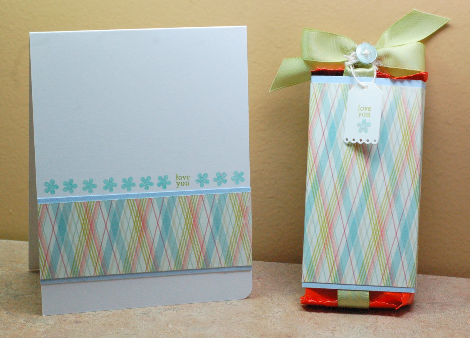 I just love the pattern in the fresh springy colours... did you stamp it yourself? Cute sleeve for the bar too.