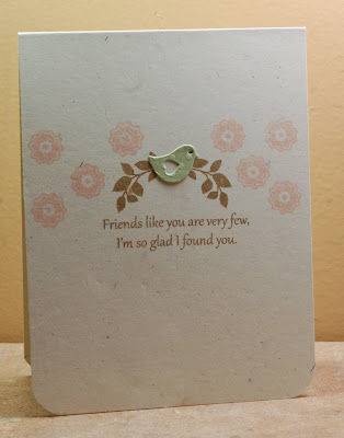 And I have a friendship card to share with you too! I loved this week's Tuesday Trigger over at Moxie Fab. The colors and the damask jumped off the picture to me. It too everything in me not to use the damask! But...I'm happy with this nice simple layout with stamps and a die from WPlus9.