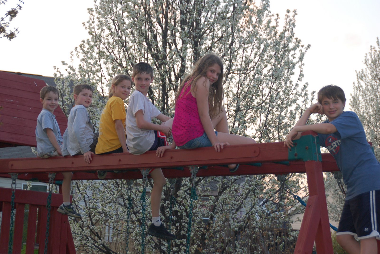 This weather certainly has been amazing! Your boys and friends look so cute and happy perched up on the play set.