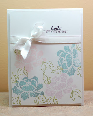 A beautiful soft feminine card... the ribbon is a perfect addition :0)