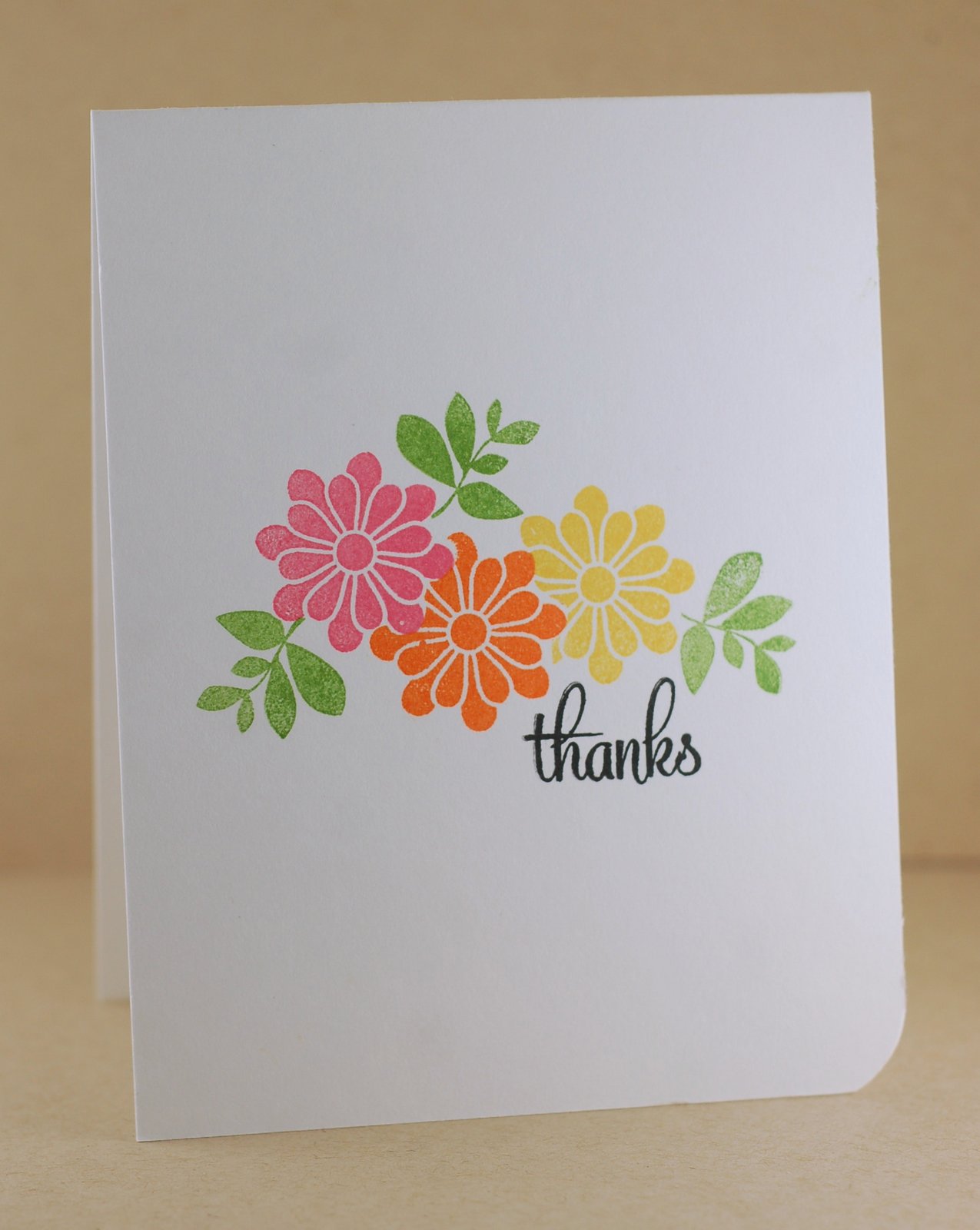 I wasn't thrilled with it, so I tried again with the card below. I had fun doing a touch of masking for these cards. And this also is an entry for the One Layer Wednesday Challenge to use three of something...three flowers...three colors...three sets of leaves. I love one layer cards!