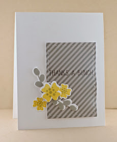 ReplyDeleteI'm late again, Lynn...so sorry. Fell in love with this card of yours at first sight. I'm a 'grey' girl too - have been since I was a kid. Love that stitched striped panel with its small bouquet. These are my niece's wedding colors, might have to CASE your card ; ) Have a blessed Mother's Day. Bev