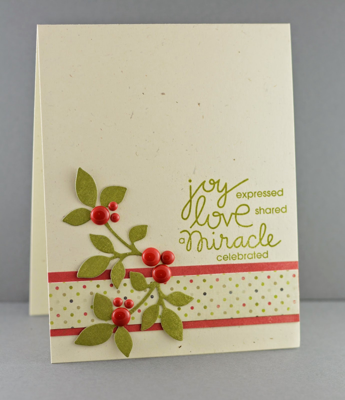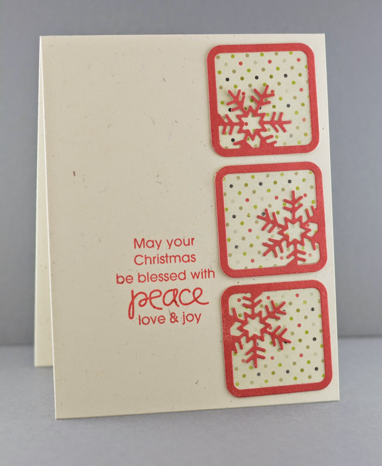 Love the dots, Lynn ... all three have a wonderful peaceful feel about them ... my fave's the first, gorgeous red and green dimension on crisp white ... yum! Anita :)