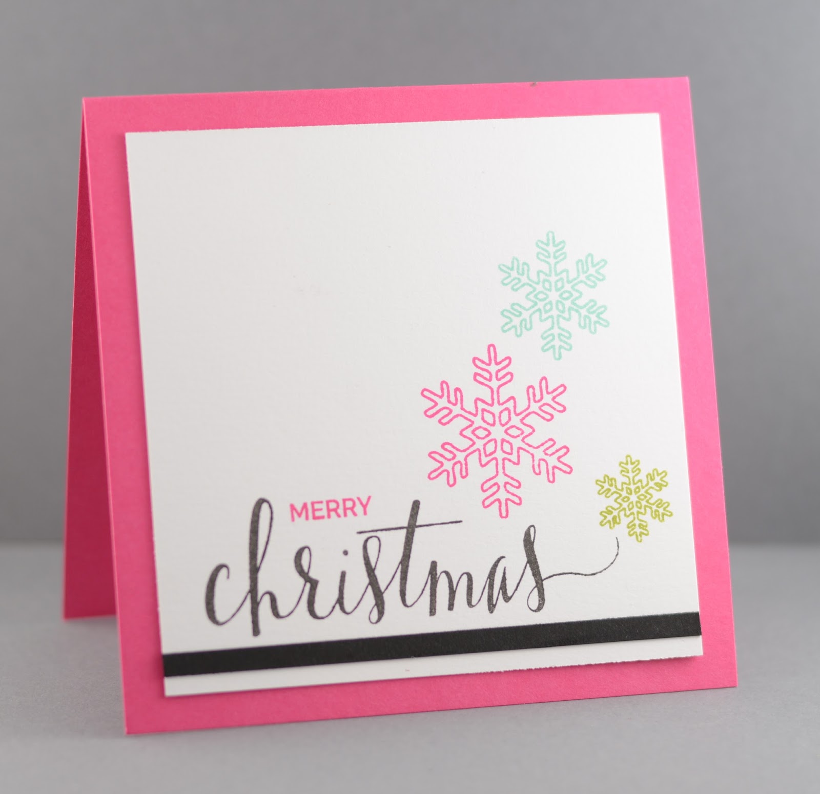 The pink looks great! Love the bold colours and the delicate snowflakes; a fun modern Christmascard! Enjoy your BD-weekend! Hugs, Gerrina