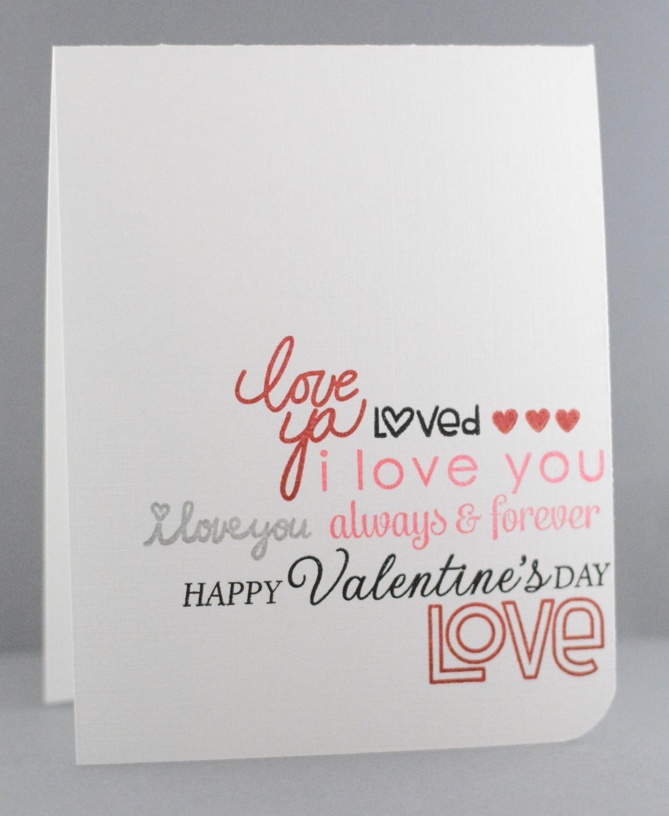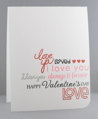 But...in the meantime...I did need a couple more Valentines for my guys. Here are the last two I made on Friday. First one is ultra CAS and went to my music lover, Ryan. And the one below went to Collin. He's the one that likes to craft the most and I knew he'd appreciate all the stamping on this one.