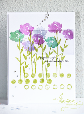 We're back with another challenge at Time Out...and a big Happy St. Patrick's Day to all of you! We have a beautiful inspiration card from Marjan. I love that her card is almost 100% stamped and the colors are so soft and subtle. You can see how I was inspired to make a very CAS design.