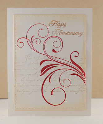 My in-laws are celebrating their 52nd wedding anniversary this month. Before I ran out to catch my flight yesterday (I'm traveling all week this week), I snuck in the craft room for an hour to make sure I had a card for them. Pat's in charge of getting it to them! My mother-in-law absolutely loves blue so I used blue Zig pens to make the stripes as well as the flowers before die cutting them. The leaves were already die cut so that made the card a bit faster to finish!