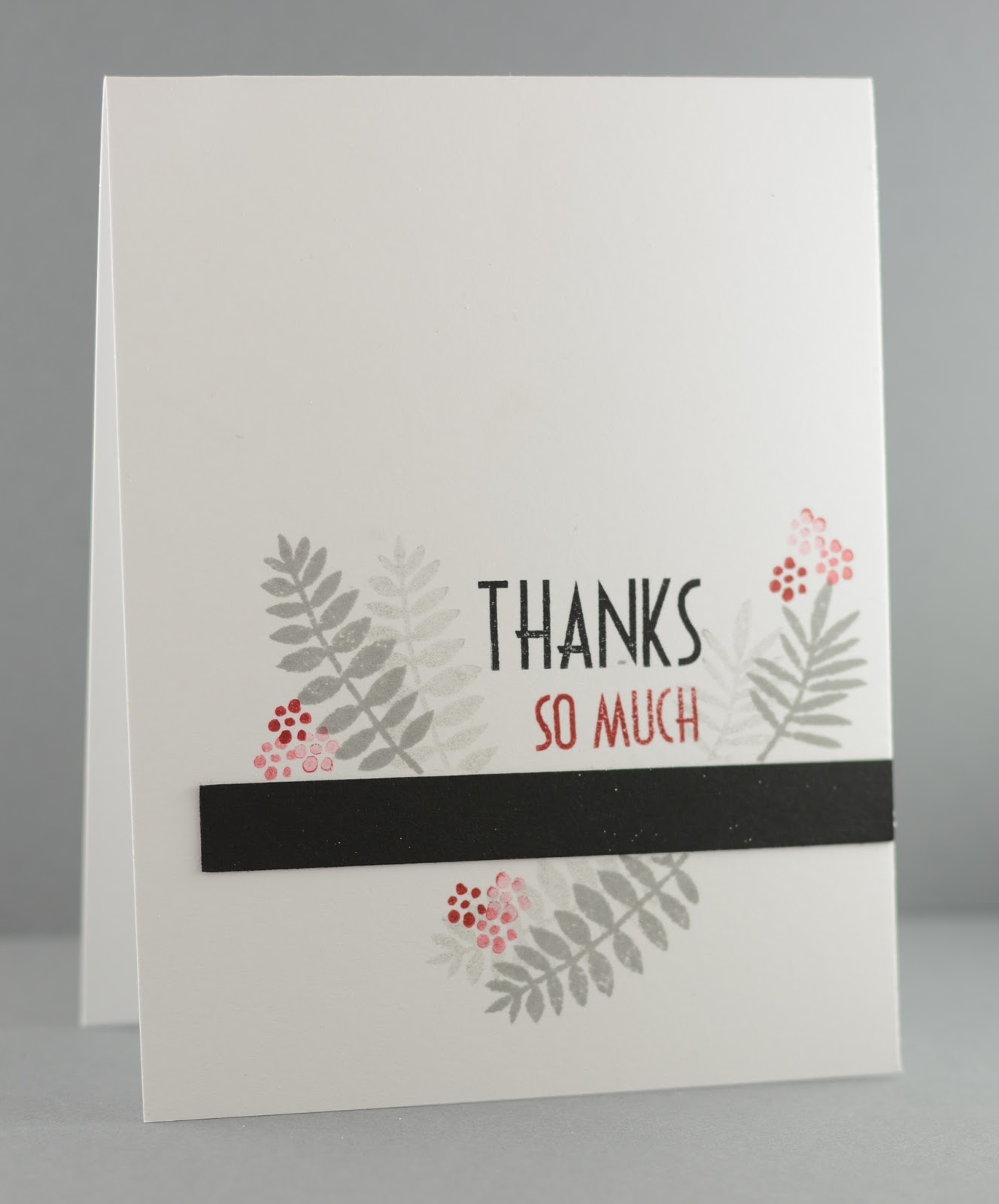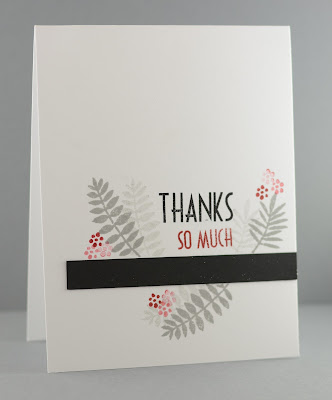 When I first saw the color combination over at Just Us Girls, I thought I'd play along making a Christmas card, but that all changed when it came time to put the ink to paper. I decided to make a masculine thank you note for a co-worker who will be celebrating his 5 year anniversary with us in a few weeks. It all came together very quickly with a few PaperSmooches stamps. Love when cards are almost all inks and stamps!