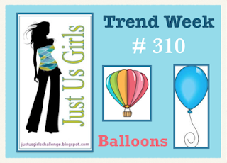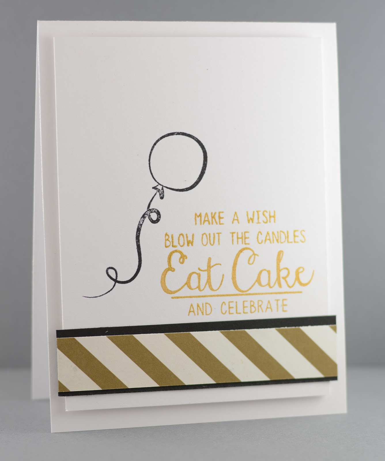 I have been truly in just in time card making mode lately (and this one is late...but the recipient is on vacation for two weeks so I'm okay!). I originally started to make this card with the sketch for CAS(e) this Sketch in mind...but it didn't turn out following the sketch that closely! So instead I went for the challenge over at Just Us Girls to use balloons! Love when things work out! Still loving the combination of gold and black together.
