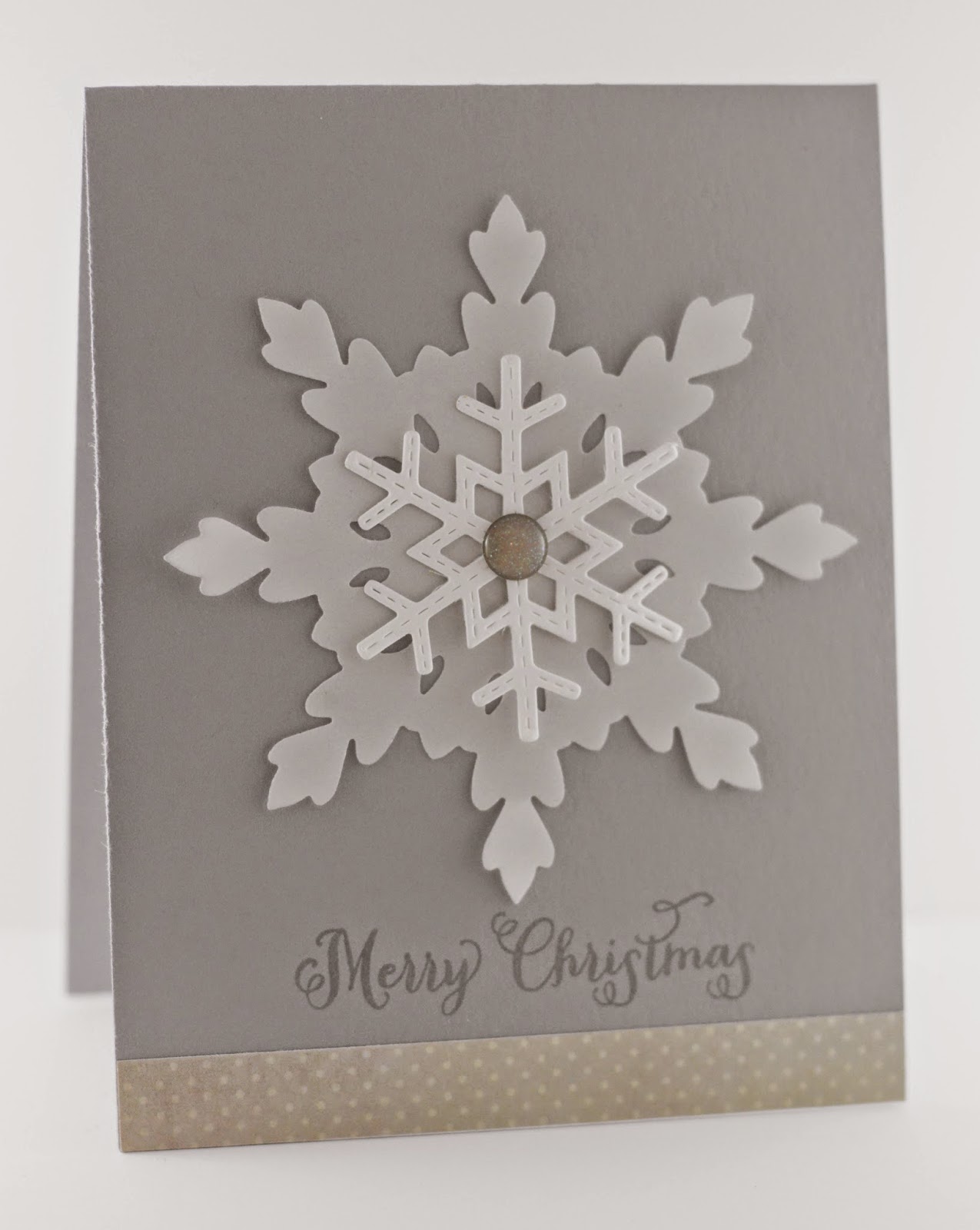 My second card is almost exactly the same as my card here, but I wasn't quite ready to put away the vellum or the polka dots! Instead of a thank you note, I made a Christmas card. It was the perfect card for the Just Us Girls word challenge of winter. Another easy Christmas card for mailing. Love making cards that slide easily into the envelope!