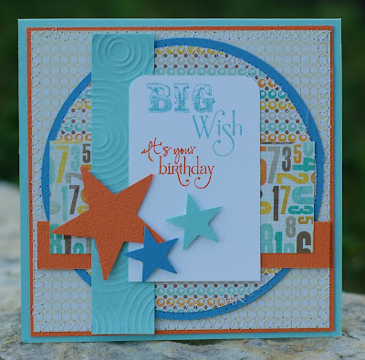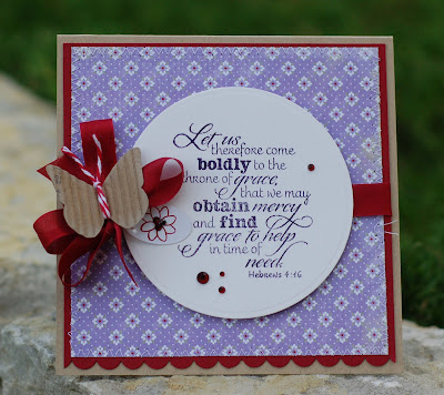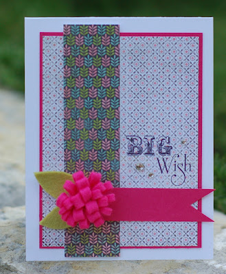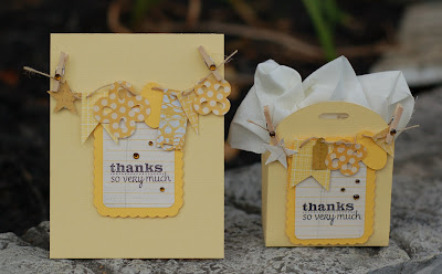 Jinny in person on Thursday! Jinny was super sweet and invited us over for dinner at her home where we got to meet her entire family. I wanted to bring a little something for her as a thank you for her hospitality. I had fun making the banner from a variety of yellow papers in my scrap bin. The favorite pieces are the Verve Loopy Flowers that go with the Verve Making a Statement set. I made this for two challenges: