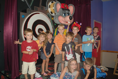 We celebrated with his cousins and friends at Chuck E. Cheese's!  Selfishly, so nice to not clean my house for his party!!