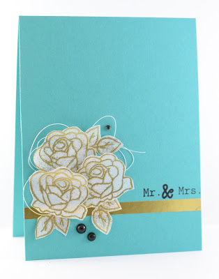 Don't fall over, but I'm going to have three cards to post this week! Yes...three...I'm on a roll. I used to post almost every day and I certainly miss creating a bit more. This card was made Saturday morning before we headed out for a wedding in Columbus OH. The colors and feel were inspired by their wedding album. A bit rustic, but very elegant. And the CAS(e) this Sketch was the perfect inspiration. Love when the card you imagine in your head translates quickly to your creation!